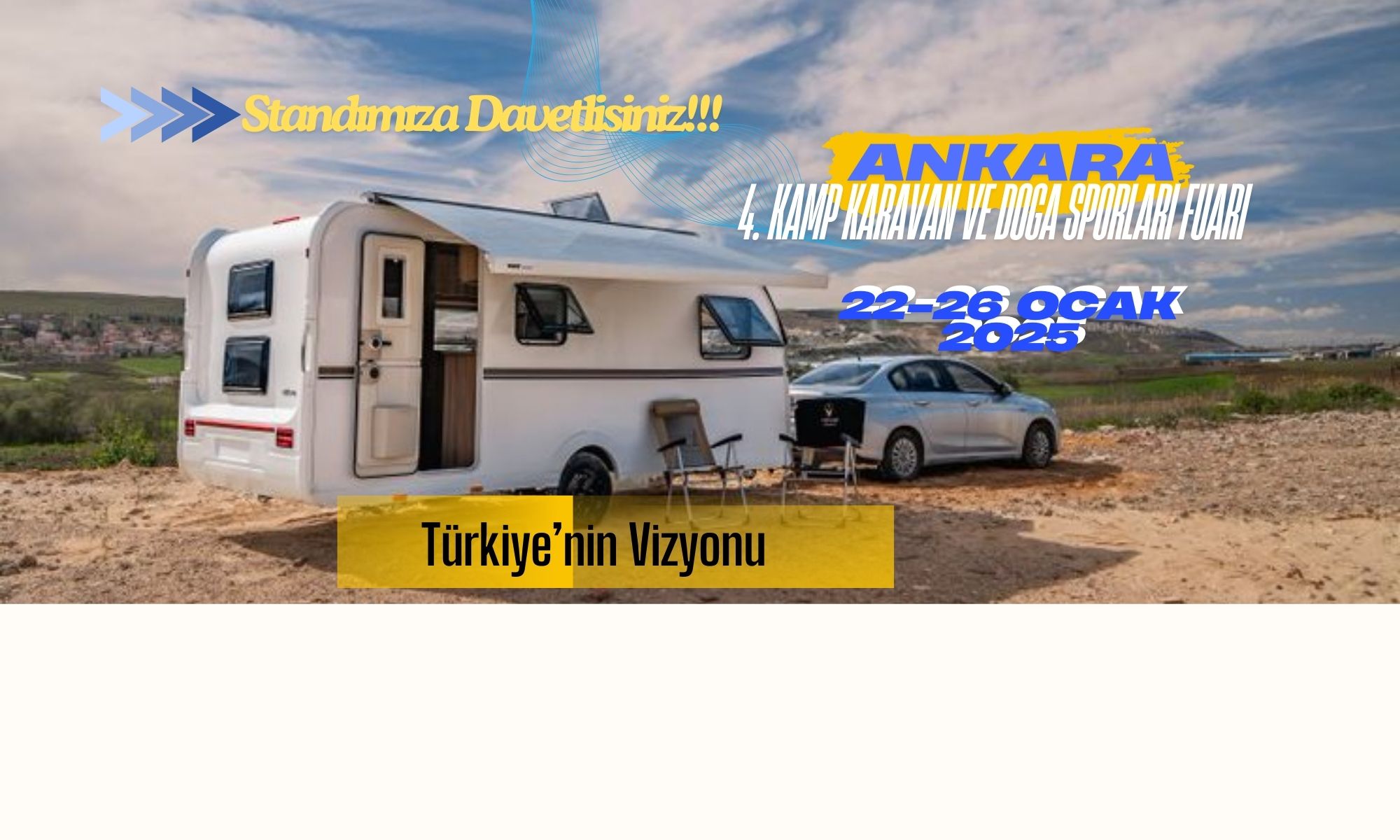 Ankara ANFA Altınpark Fuar Merkezi'nde 22-26 Ocak tarihleri arasında düzenlenecek "4.Ankara Kamp Karavan ve Doğa Sporları Fuarda" Vizyon Karavan standımıza bekliyoruz.